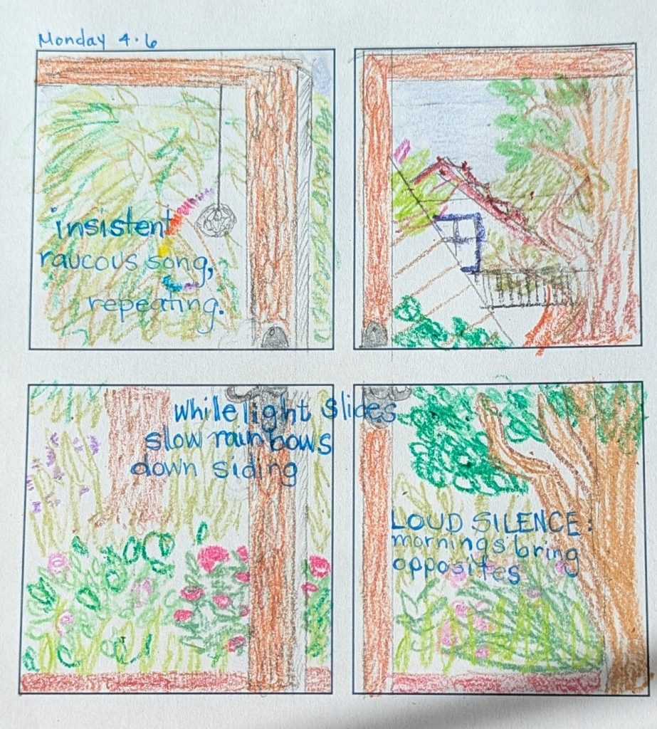 Birding for words shimmering, flecked in golden gilding.Binoculars ready, I toured boulevards and side streets,
