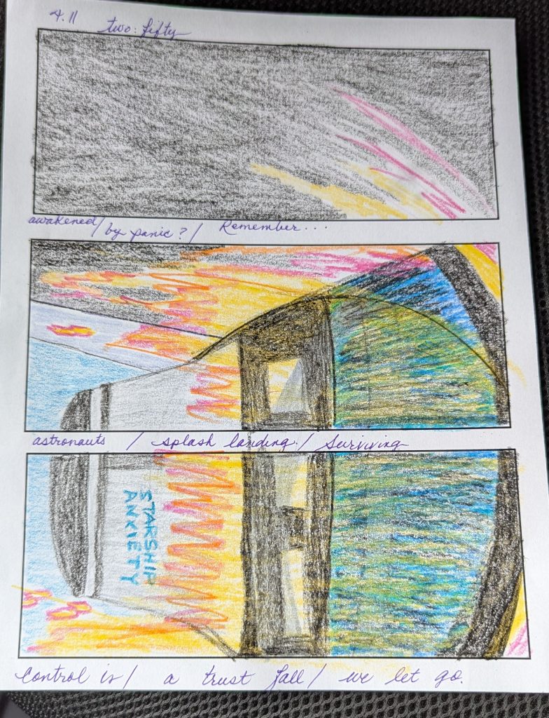This week we have arrived at the portion of the NPM celebration wherein I acknowledge that I will be so glad when it’s May. Not because I can’t write a daily poem – I can, and probably should. Not because I can’t draw a daily doodle, either, though these images are only just now becoming the shorter, quick-sketch thing they were meant to be from the beginning, with fewer attempts at a photo-realistic literal and more impressionistic and observational within a metaphorical window… but because I always (always, always) set myself some project expectation that I absolutely struggle to complete. While the poems are moving from externally observant and becoming more internal, I’m finding that the form is inhibiting me – though this was a deliberate choice. Tricubes are meant for brevity, after all, and this is a process to teach myself to lean into that – but it’s just… hard. Normally I use poetry to process. Often there’s more I want to say, but it feels like dwelling – and I’m not going to change forms, though I feel the desire. Additionally, I DO have other things to do…