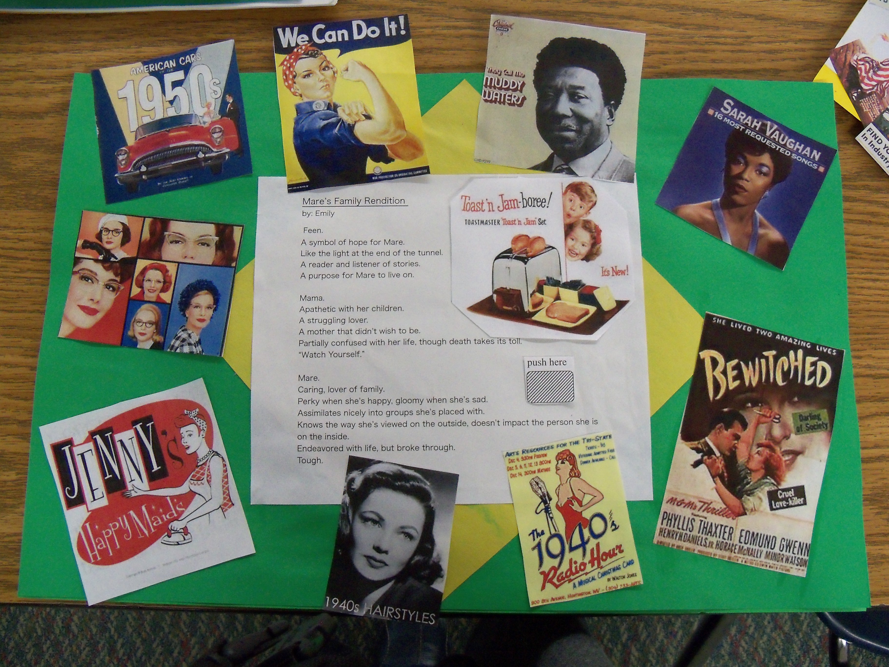 Last week for our Grade 6 Poetry Project, we were introduced to the Oakwood School’s collage poetry assignment, and explored the perspectives of two fine poets. Ethan and Alan wrote about MARE’S WAR and Mare’s relationship to her mother, and the structure of her world. This week, poets Claire and Emily use their extensive vocabularies to speak about Mare as sister and daughter – hopeful, persevering, and tough.