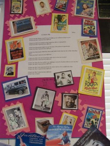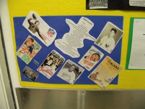 The assignment was a collage plus a poem – and if you look at the photograph, there’s a “push me” at the bottom of the poem, where you can hear the poet read their own work. Ethan’s poem is a well constructed call-and-response structure, on the topic of expectations – his take on what Mare felt about her life.